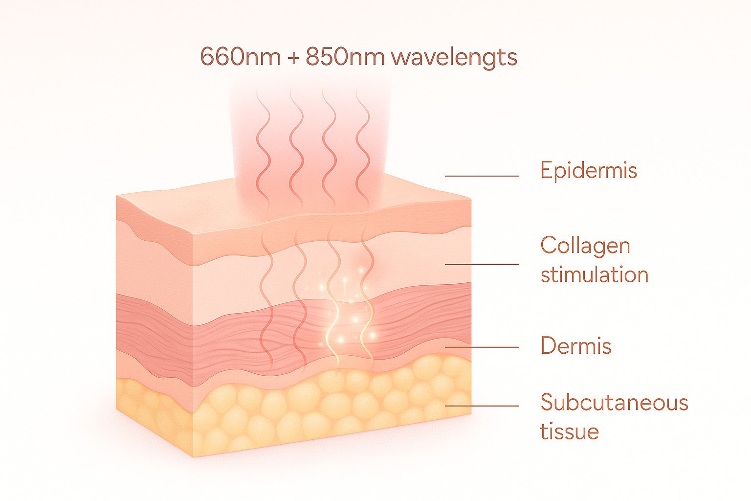 FDA-Registered red light therapy device — 660nm + 850nm wavelengths rejuvenate tired skin, ease postpartum aches, and speed full-body recovery with visible results in just 2–4 weeks.